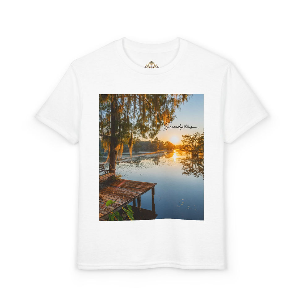 Youth T-Shirt — Lakeside Sunrise Photo Tee with 'Gratitude' Script
