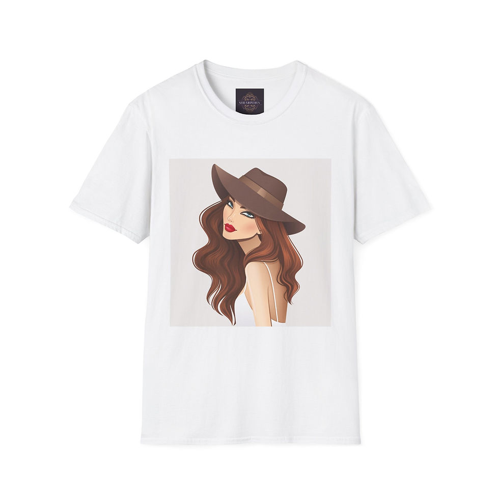 Boho Chic Woman Portrait T-Shirt — Stylish Illustrated Lady in Fedora Tee