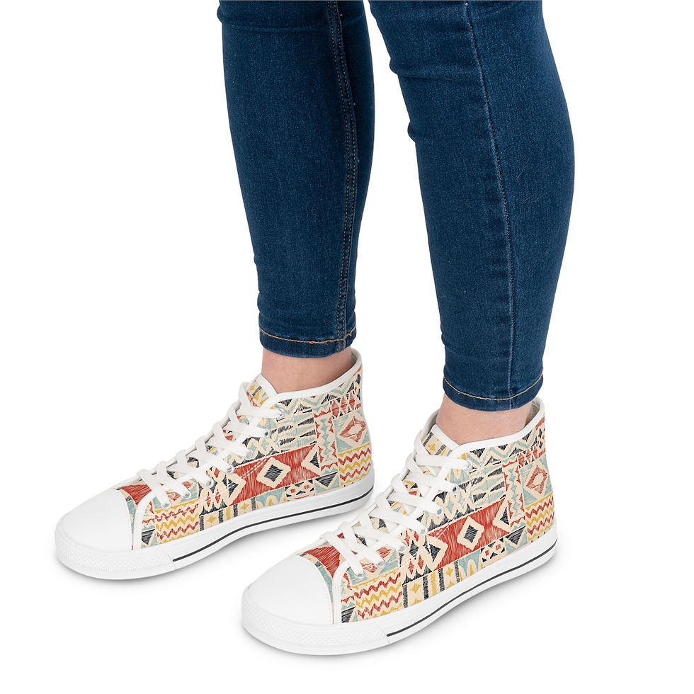 Boho Aztec High-Top Sneakers — Women's Tribal Pattern Canvas Shoes