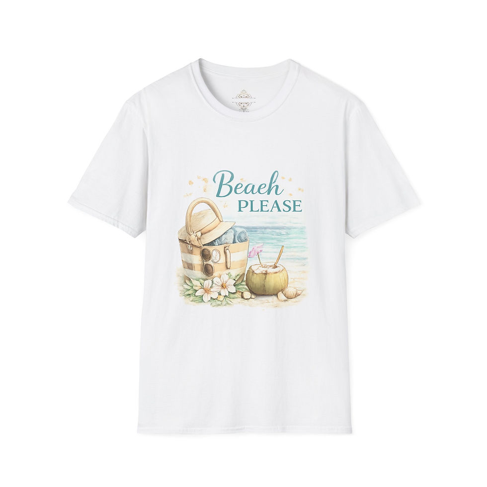 Beach Please T-Shirt — Tropical Beach Bucket & Coconut Drink Graphic Tee
